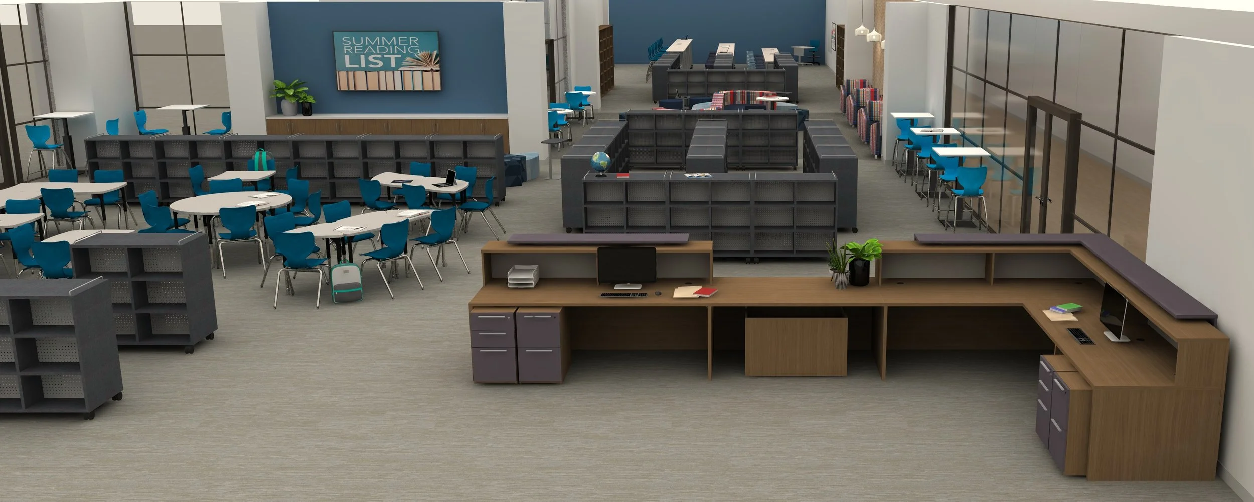 Elementary library designed to spark imagination and foster a lifelong love of reading. Warm, inviting, and full of discovery, the space encourages young learners to explore books in a setting that feels both inspiring and comfortable.